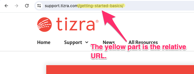 Note: If you're linking to a page within your Tizra site, be sure to use a relative URL as shown below so the links will work on both staging and live.